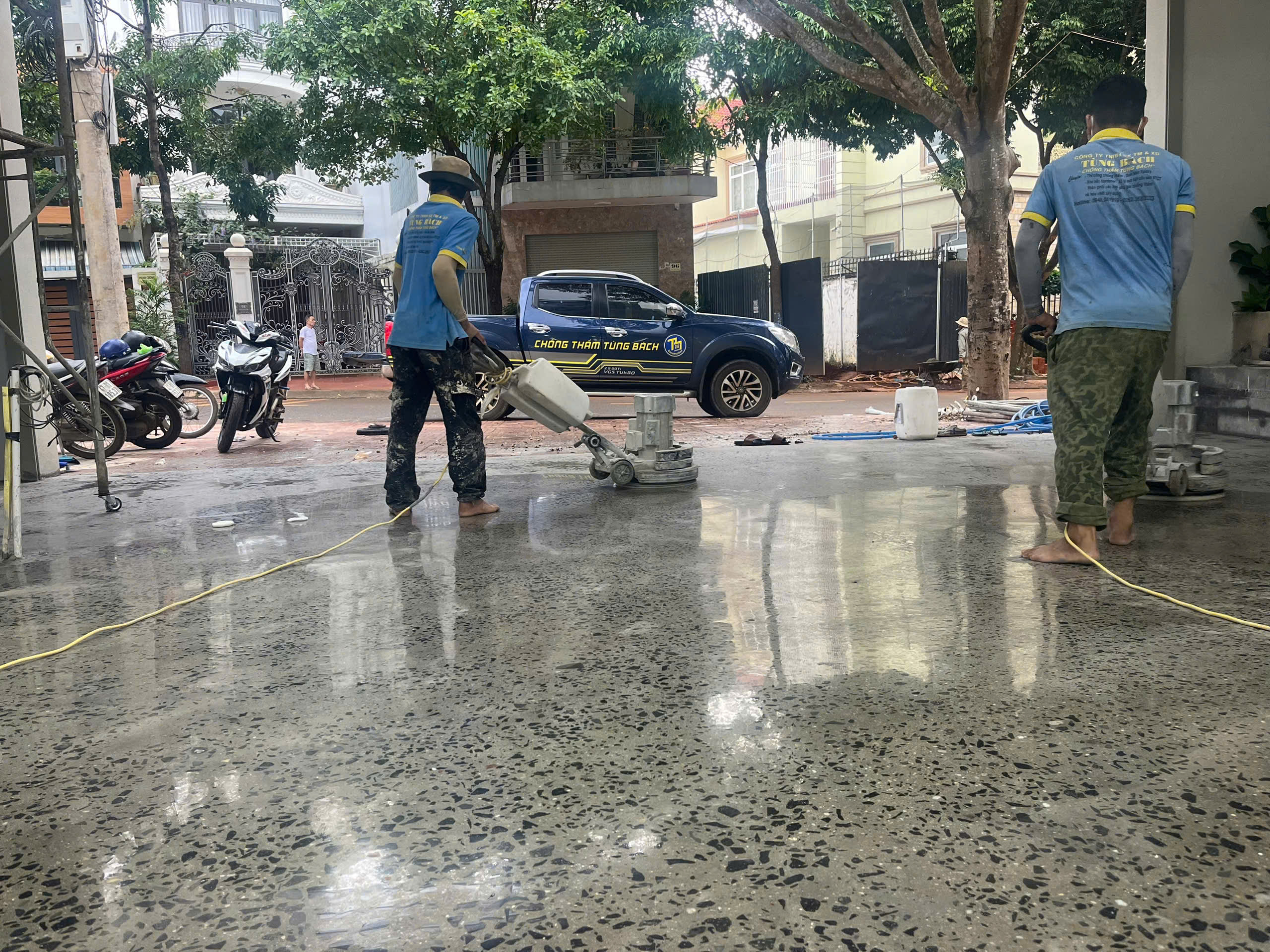 - Phun hoá chất tăng bóng và dùng máy mài chuyên dụng để thi công