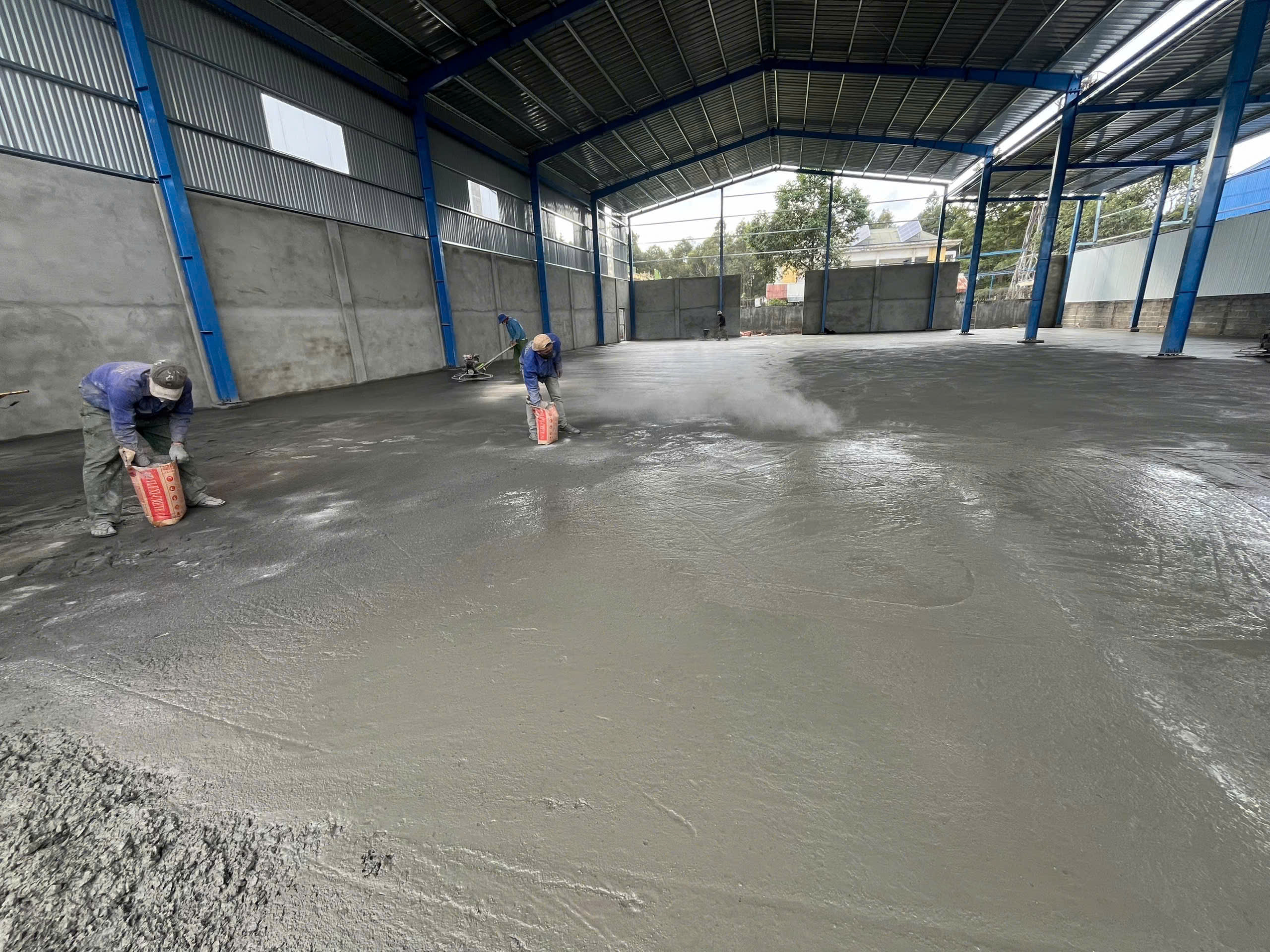 - Đổ bê tông nền (có thể thi công thêm sơn epoxy hoặc đánh bóng)